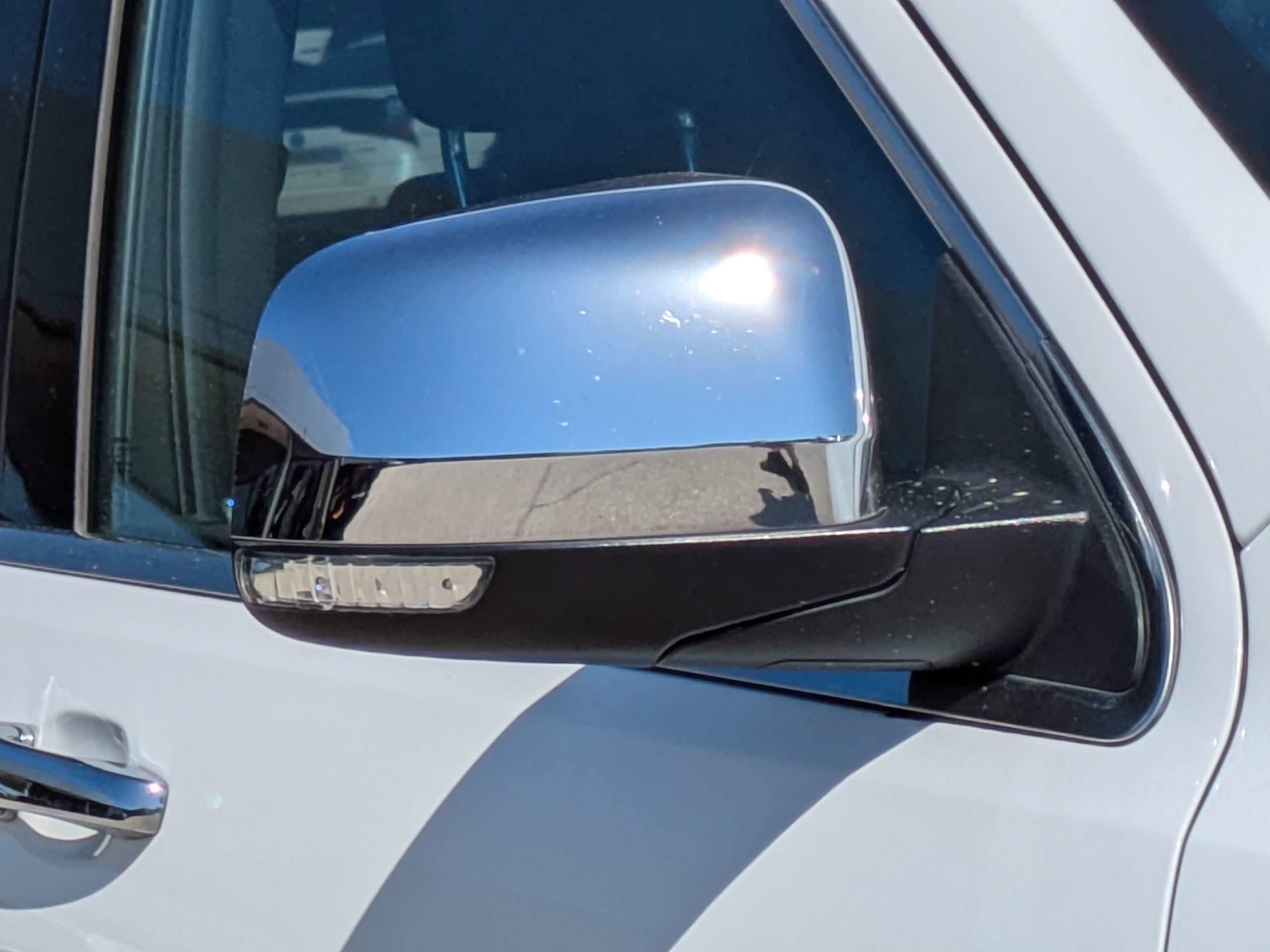- Chrome Power w/Tilt Down Heated Side Mirrors w/Driver Auto Dimming, Manual Folding and Turn Signal Indicator