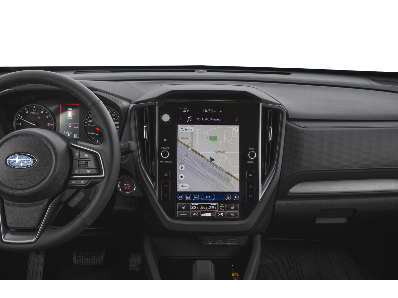 - Radio: Subaru 11.6" Multimedia Plus System -inc: valet mode, integrated center information display, AM/FM stereo HD Radio, multi-touch gesture high resolution display screen, voice activated controls, Bluetooth audio streaming and hands-free phone connectivity w/SMS text messaging connectivity (refer to subaru.com for cell phone compatibility), iPod control capability, SiriusXM w/360L (4 months free trial/subscription required after), SiriusXM Travel Link (3 years free trial/subscription required after), smartphone integration for Android Auto and Apple CarPlay w/full screen view and wireless connection, USB and Over The Air (OTA) audio system update, steering wheel control switches for audio and Bluetooth, 6 speakers, 3.5mm auxiliary input jack and roof mounted audio and satellite antenna